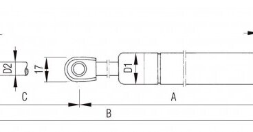 Hub C [mm]: 400, Federkraft [N]: 1250, Länge A [mm]: 496,5, Länge B [mm]: 896,5, Zylinder D1 [mm]: 28, Kolbenstange D2 [mm]: 14Art.-Nr.: 14329