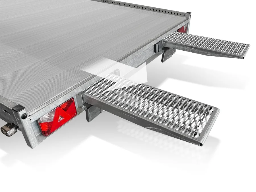 Carax ist ein Multitransporter für den Profi, der für den Transport grosser Fahrzeuge wie Vans und SUVs entwickelt wurde. Der Carax ist in der Gewichtsklasse von 3000 oder 3500 kg, als Tandem oder Tridem und einer Kastenabmessung von 440x207 cm oder 540x207 cm erhältlich. Die Stahlrampen mit einer Länge von 250 cm werden im Fahrgestell gelagert. Der stabile Rahmen sorgt für eine optimale Unterstützung des Aluminium-Ladebodens. Der Carax Multitransporter ist 100% holzfrei und wartungsarm.